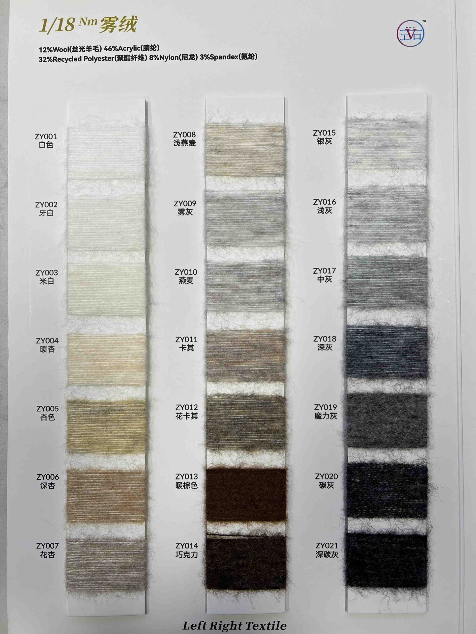 成分:12%丝光羊毛 46%腈纶 8%尼龙 32%再生涤纶 2%氨纶