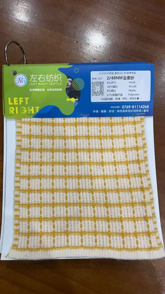 成份: 6%羊毛(Wool) 18%腈纶(Acrylic) 9%锦纶(Nylon)