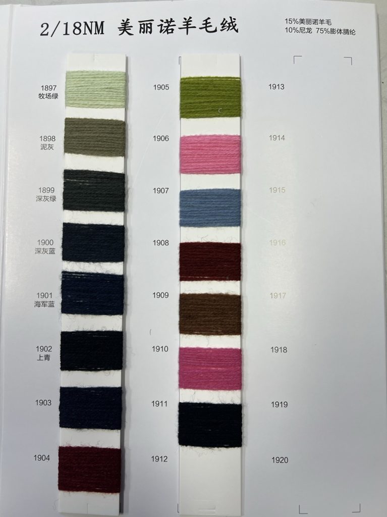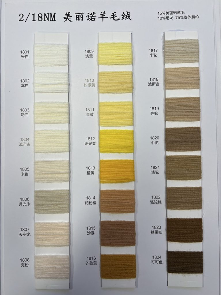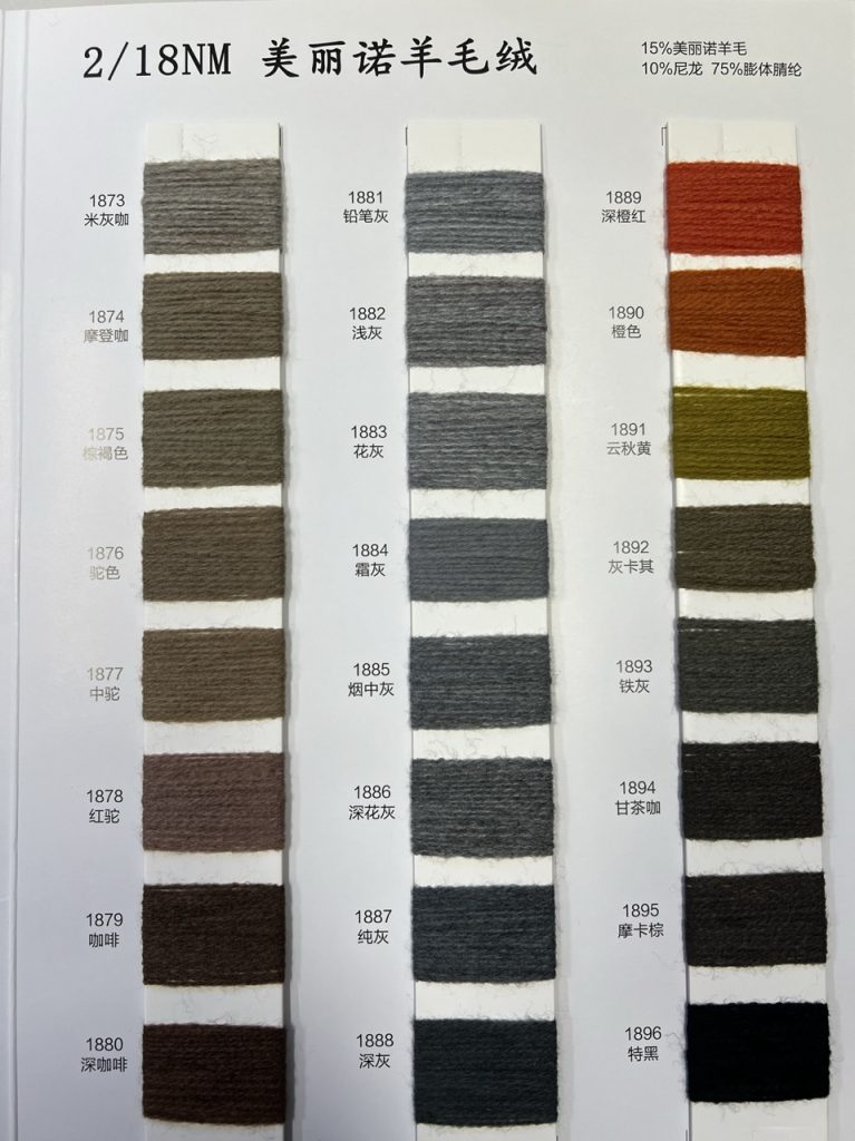 毛腈混纺 秋冬系列 羊毛混纺系列 2/18Nm 美丽诺羊毛绒 来自 zuoyou|已发表 2026年3月19日 左右织选·毛腈混纺系列 ── 经典美利诺血统,织物质感丰满,秋冬外套优选 成分:15%羊毛 10%尼龙 75%腈纶 15% wool, 10% nylon, 75% acrylic